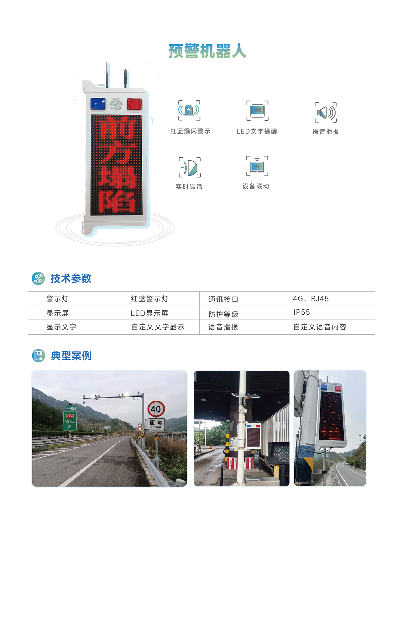 信路威會(huì)車預(yù)警系統(tǒng),具有車輛檢測(cè)、告警信息展示(LED 屏幕、語(yǔ)音、警示燈)、雙機(jī)聯(lián)動(dòng)等主要功能,主要對(duì) T 型路口、U 型彎道的來(lái)往車輛進(jìn)行車輛檢測(cè)、精準(zhǔn)警示及主動(dòng)告警,用于保障視距不良路段雙向來(lái)車安全會(huì)車,適用于城市道路、國(guó)道、省道、縣道、鄉(xiāng)道、村道和小區(qū)內(nèi)道路。