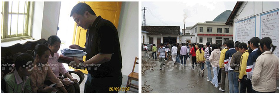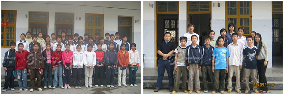 2007年9月26日,信路威的多位領(lǐng)導(dǎo)及員工走進西南的大山深處,為當?shù)囟嗨MW(xué)送去溫暖。