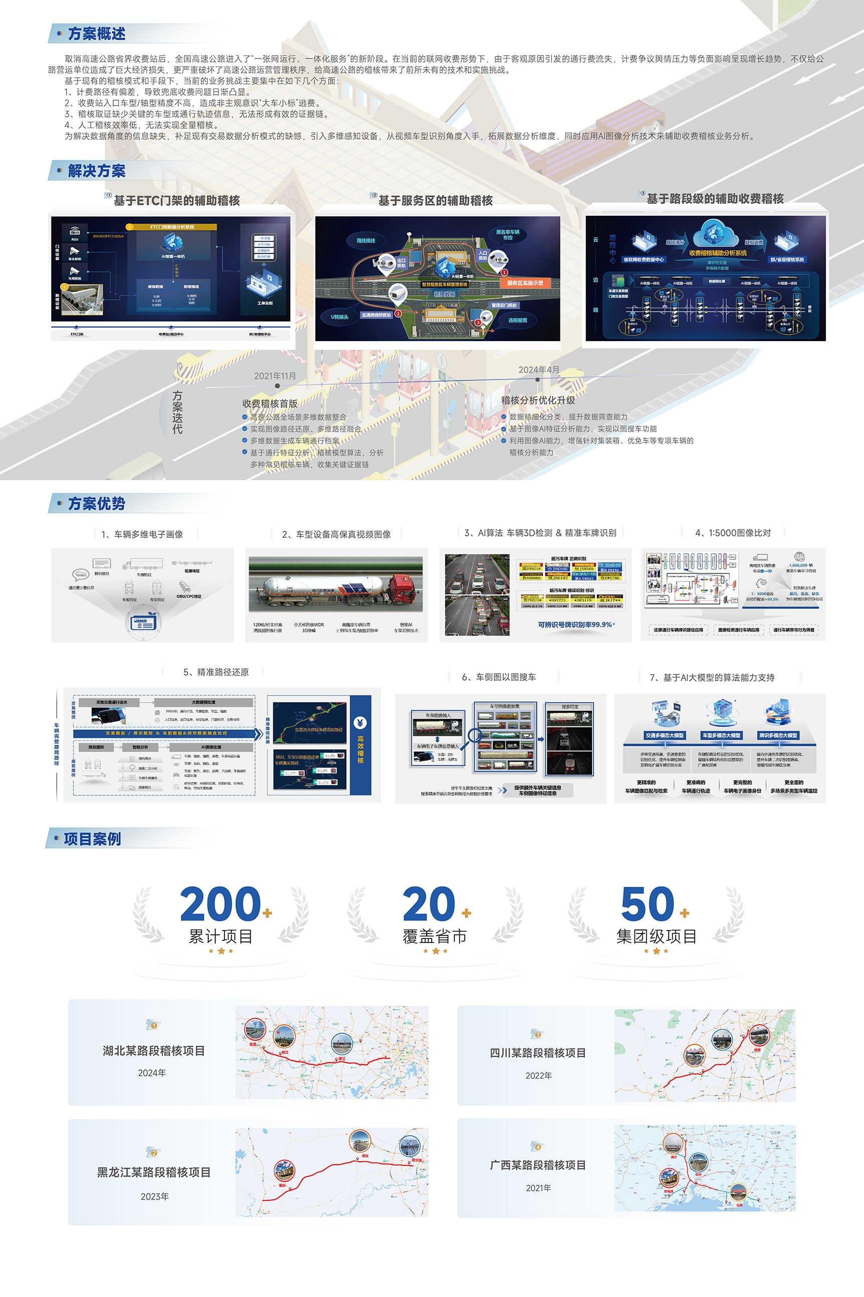 高速公路稽查(逃費(fèi))系統(tǒng),是基于大數(shù)據(jù)+智能視頻技術(shù)的高速公路智能打逃/稽查管理系統(tǒng),利用信息技術(shù)手段,重點(diǎn)針對(duì)高速公路運(yùn)營(yíng)管理面臨的突出問(wèn)題,整合現(xiàn)有信息資源,采用頂層設(shè)計(jì)的辦法,采用最先進(jìn)的大數(shù)據(jù)+高清智能視頻技術(shù),獲取車輛信息和數(shù)據(jù),勾繪出車輛從進(jìn)入高速公路至駛離高速公路的可視化路徑,采用數(shù)據(jù)挖掘和圖像比對(duì)技術(shù),實(shí)現(xiàn)車輛信息采集、車流量監(jiān)測(cè)和統(tǒng)計(jì)、車輛交通違法行為和打逃行為識(shí)別取證等功能。并以此為基礎(chǔ),建立“高清化、可視化、可控化”的高速公路車輛信息大數(shù)據(jù)中心,為高速公路聯(lián)網(wǎng)收費(fèi)系統(tǒng)提供打逃車輛信息服務(wù),杜絕車輛的逃費(fèi)行為,提高高速公路管理效率,為物聯(lián)網(wǎng)、車聯(lián)網(wǎng)提供車輛信息服務(wù),為實(shí)現(xiàn)“智慧高速和自由流收費(fèi)”奠定堅(jiān)實(shí)的基礎(chǔ)。