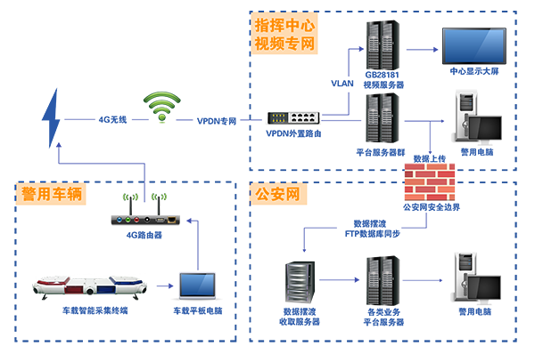 具備移動警務應急指揮中心功能,實現(xiàn)警車的定位、指揮調(diào)度和勤務督導。